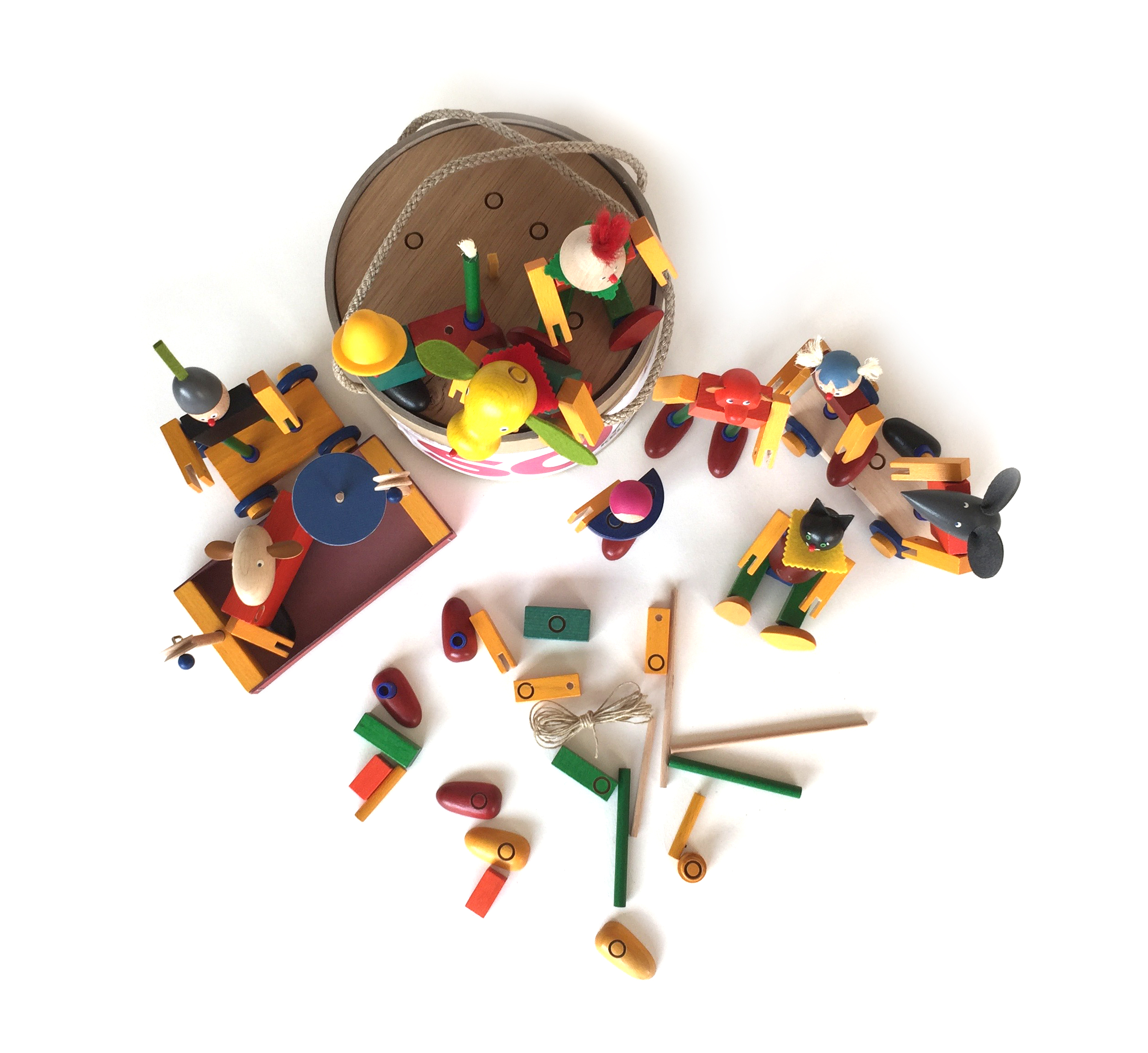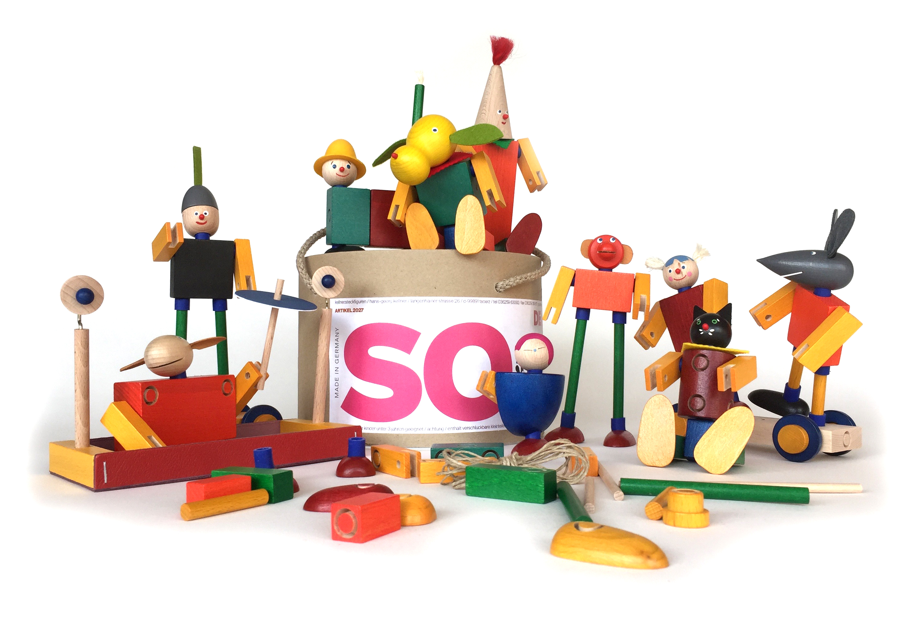 Steckfiguren die Fröhlichkeit versprühen. Nicht nur zu Hause sondern auch unterwegs im praktischen Eimer.